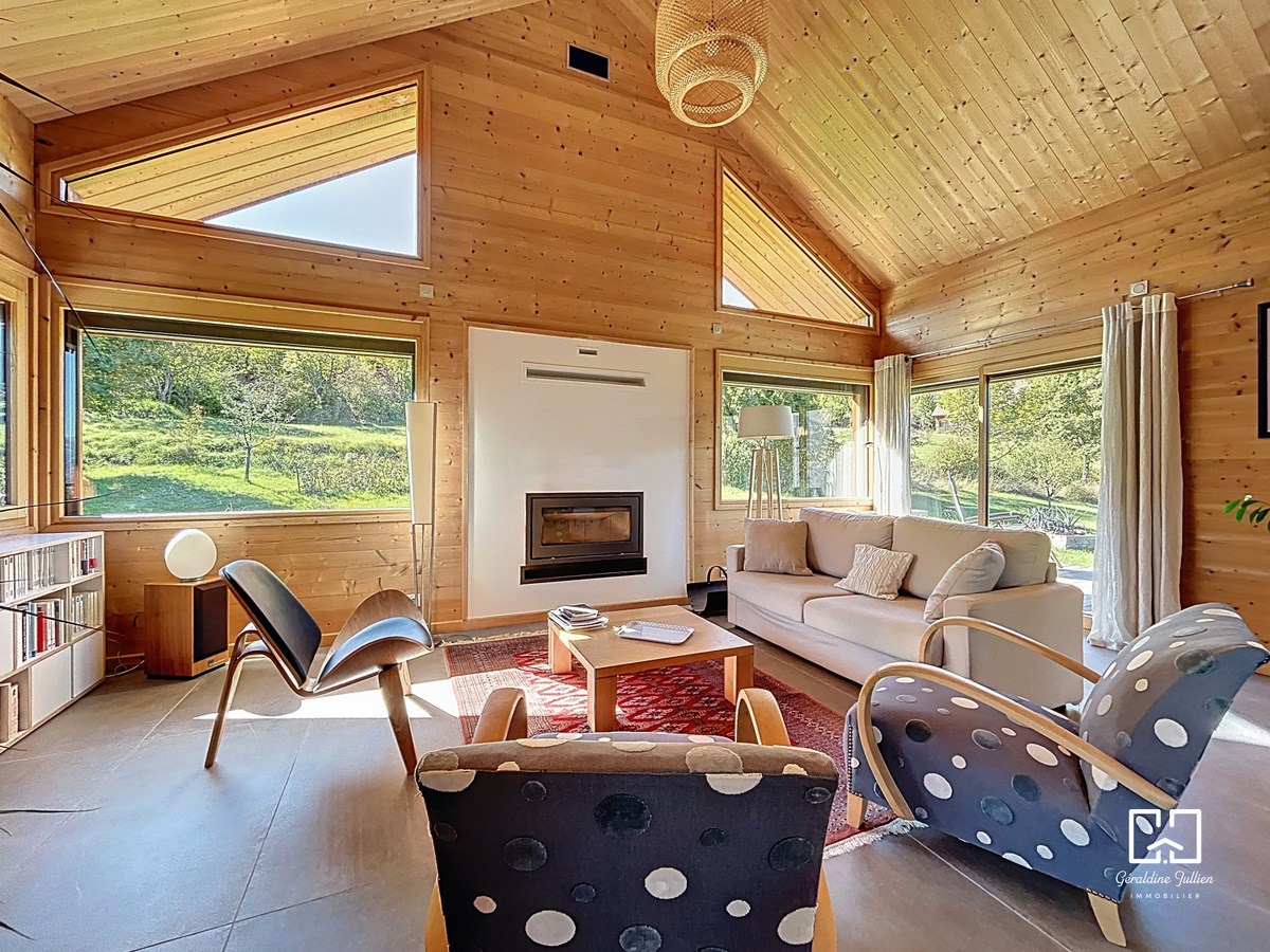 Dans un environnement naturel d’exception, ce chalet d’architecte de 125 m², récemment construit, offre un niveau de confort rare et une vue panoramique à couper le souffle sur les montagnes et le lac.