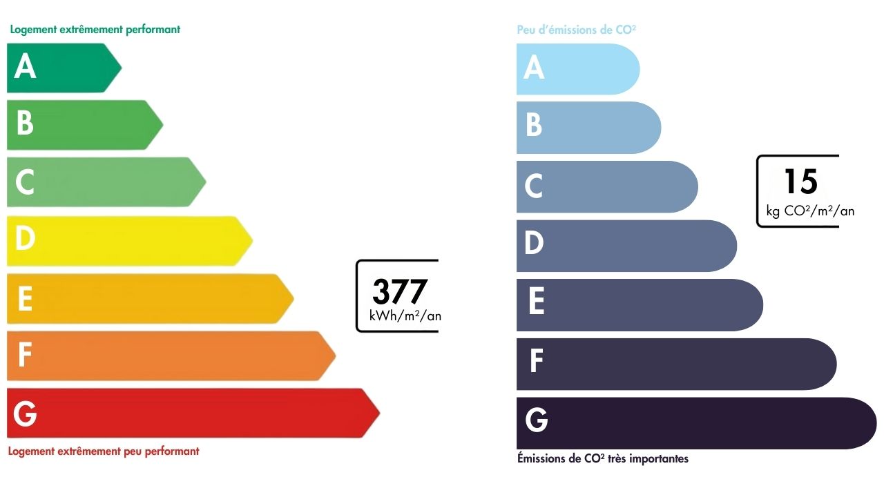 Classe E énergie , Classe climat C .Montant estimé des dépenses annuelles d'énergie pour un usage standard : entre 5330€ et 7250€ sur les années 2021, 2022 et2023