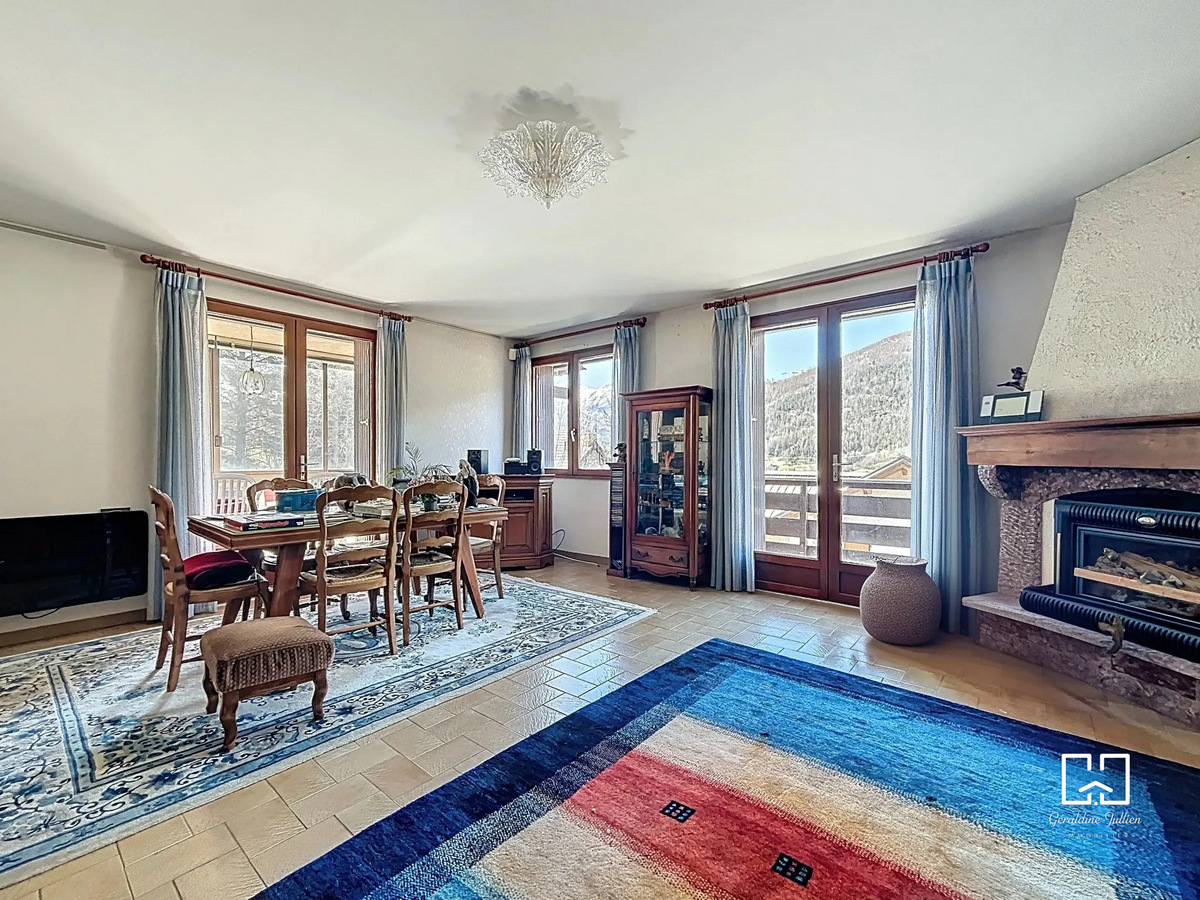 Élevée sur deux niveaux, la maison présente à l'étage un salon avec cheminée ancienne, une cuisine séparée, un cellier, deux grandes chambres, une salle de bains, un WC indépendant et une véranda fermée sur balcon. Le rez-de-chaussée propose trois chambres supplémentaires, une seconde salle de bains, une véranda et un grand garage isolé de 50 m².